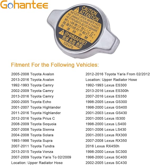 Amazon Com Radiator Cap Sub Assembly Replace 16401 31520 For Toyota Avalon Camry Echo Highlander Prius C Sequoia Sienna Solara Tundra Venza Yaris Lexus Es300h Es350 Gs300 Gs430 Is300 Ls430 Rx300 Sc430 More Automotive