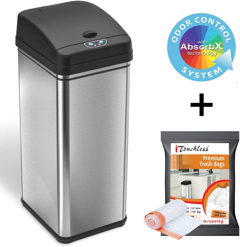 Itouchless 13 gallon fingerprint proof stainless steel step sensor trash can product tour duration.