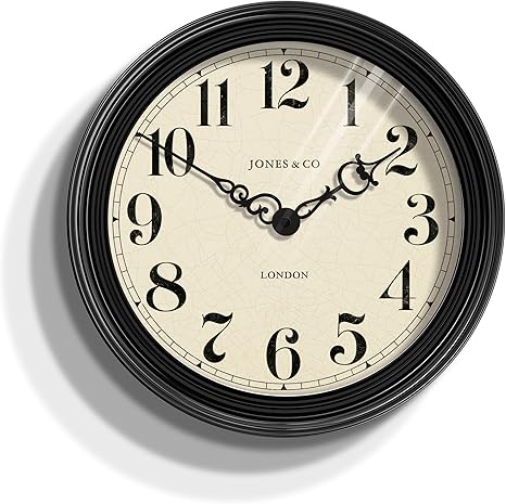 Jones clocks venetian wall clock arabic dial and traditional black spade blue uk.