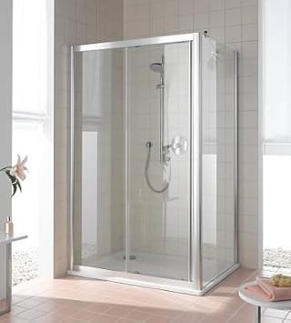 Kermi atea hinged door corner entry two part with fixed panels one half tsg transparent silver high gloss atesr12020vak with best price guarantee.