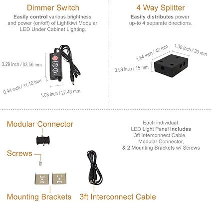Easily connect two lightkiwi modular led under cabinet lighting panel in the distant connector information 3 5mm outer diameter x 1 35mm inner diameter.